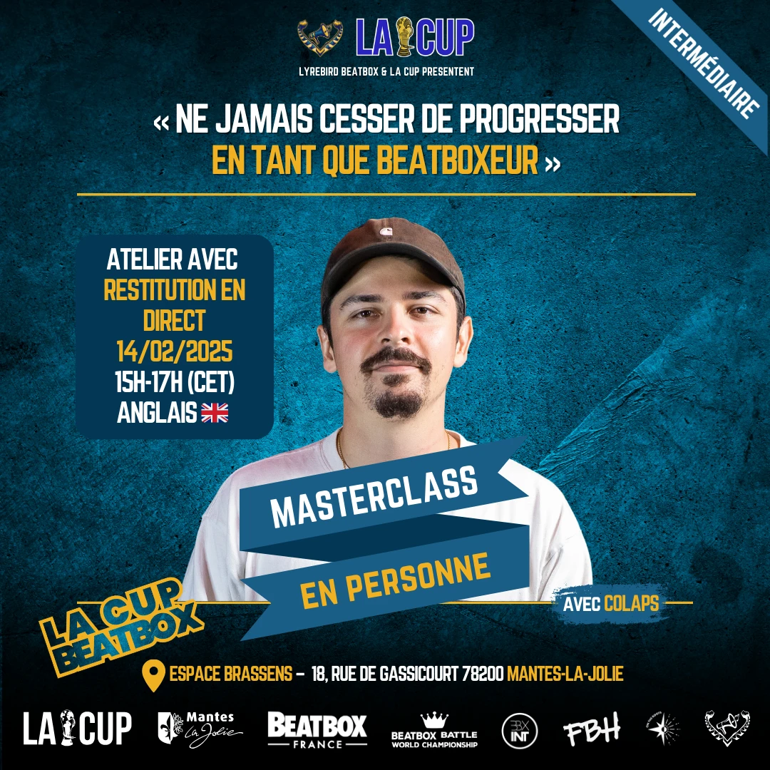 - Freestyle / Routine (1 minute) : Partage tes compétences et reçoit des commentaires en direct de Colaps et des autres beatboxeurs.